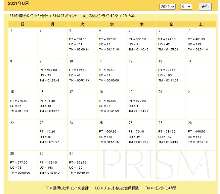 のぞきが一人もつかずにチャットが進んだ場合、1時間で6,000ポイントになります。